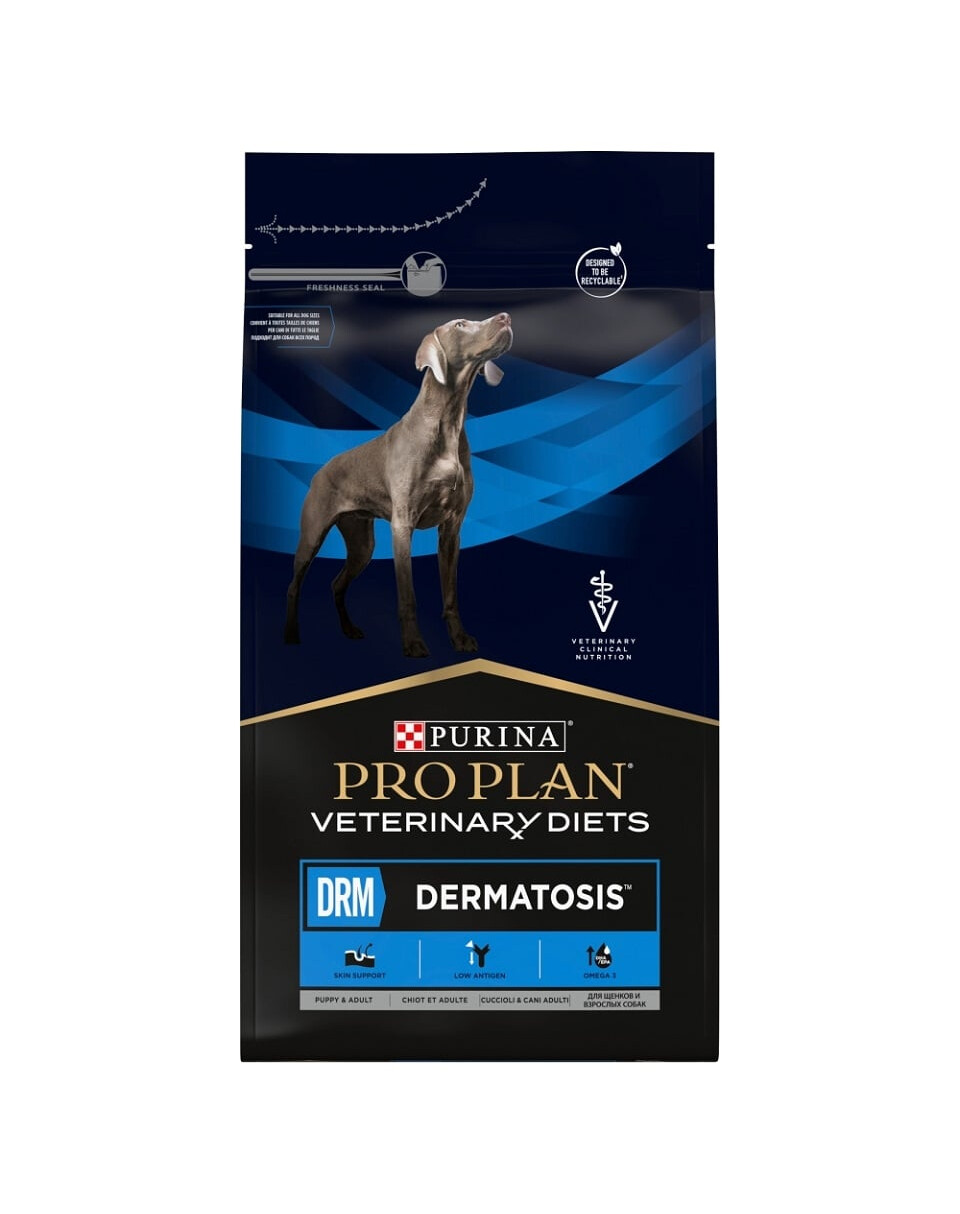 Diätetisches Alleinfuttermittel für Welpen und ausgewachsene Hunde zur Unterstützung der Hautfunktion bei Hauterkrankungen und übermäßigem Haarausfall mit hohem Gehalt an Linolsäure (LA) und der Summe aus Eicosapentaensäure (EPA) und Docosahexansäure (DHA).