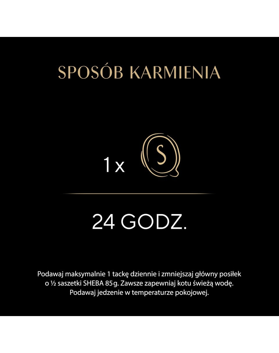 Fütterungshinweise: Bitte füttern Sie bis zu 1 Packung täglich und reduzieren Sie die Hauptmahlzeit um eine halbe SHEBA-Packung (85 g).