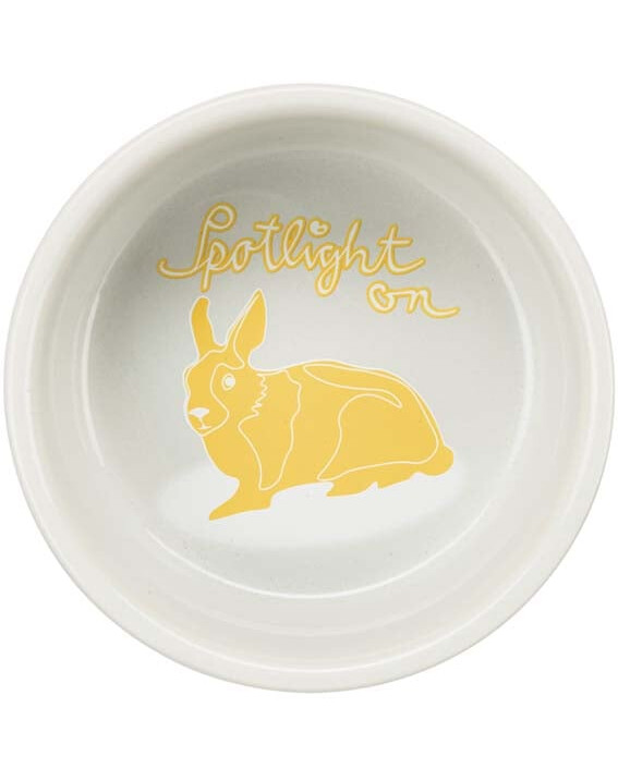Keramikschale für Kaninchen mit Kaninchenmotiv. Erhältlich in mehreren Farbvarianten, die nach dem Zufallsprinzip verschickt werden.