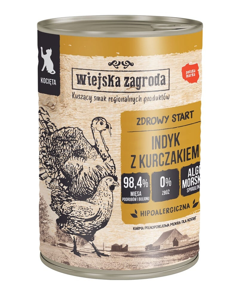 Pute 35% (davon ca. 80% Muskel- und Herzfleisch, ca. 20% Leber), Huhn 35% (100% Muskelfleisch), Puten- und Hühnerbrühe 28,4%, Mineralstoffe 1%, Lachsöl 0,5%, Spirulina 0,1%.
