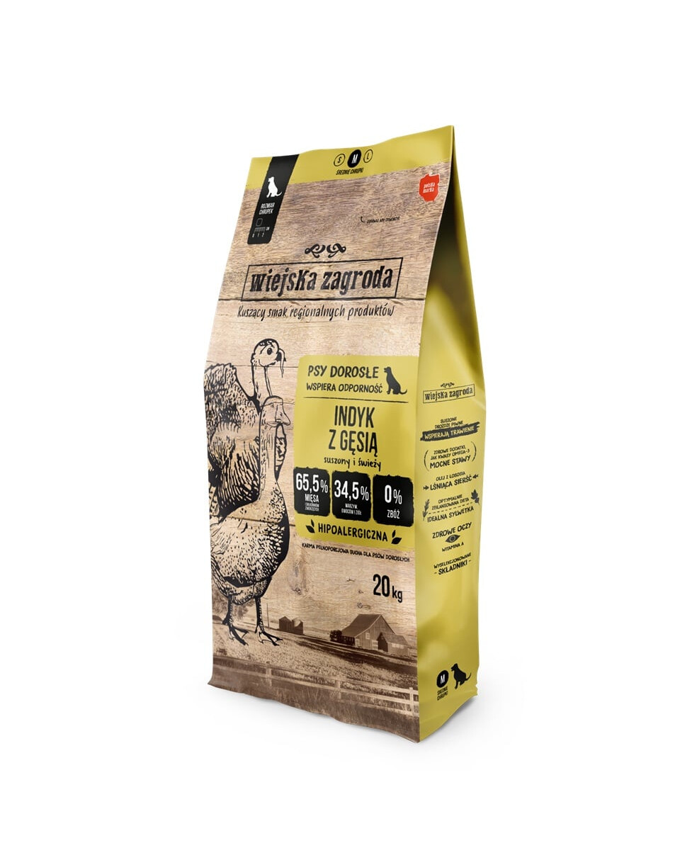 Wiejska Zagroda ist ein polnisches, mit größter Sorgfalt zubereitetes vollwertiges Hundefutter. Regionale Produkte von lokalen Lieferanten garantieren die Frische und Qualität der Zutaten, aus denen wir unsere Futtermittel herstellen. Die Futtermittel entstanden aus dem Bedürfnis, unseren Hunden das zu geben, was sie am meisten brauchen, nämlich Fleisch und tierische Zutaten!