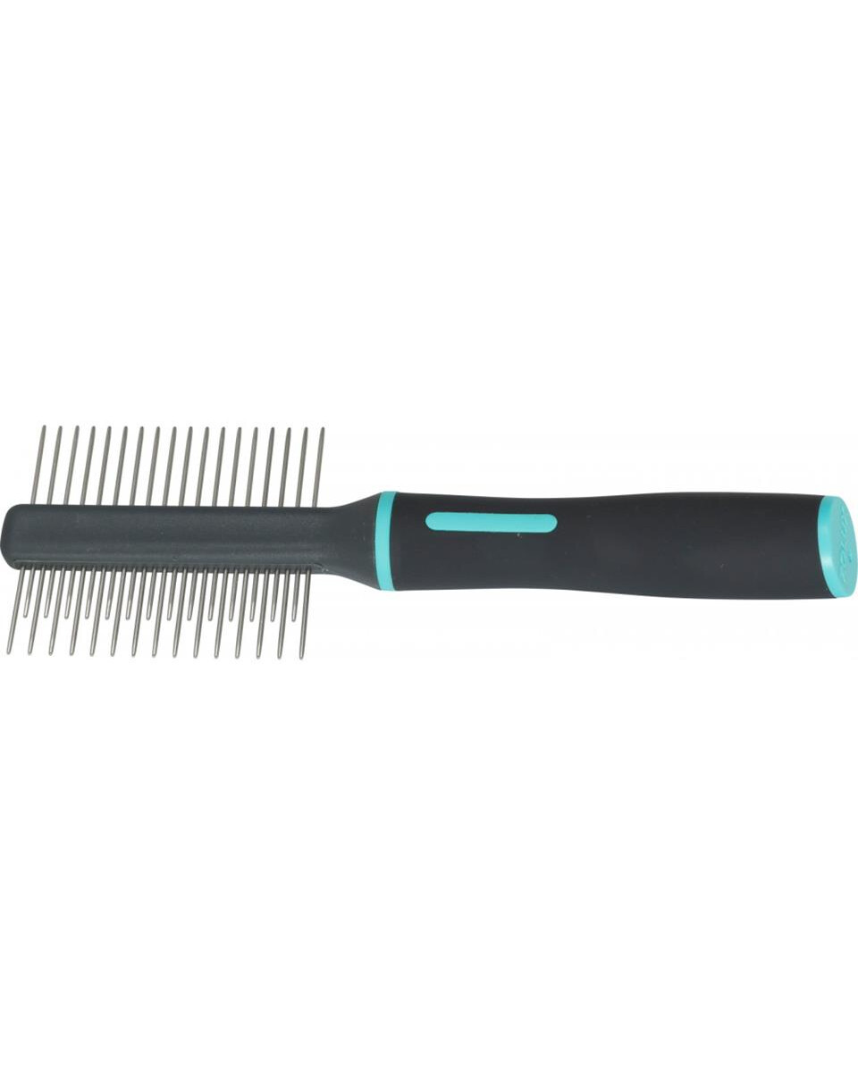 Ein zweireihiger Kamm für langhaarige Hunde. Der Kamm ist extrem robust und hat einen rutschfesten, weichen Griff. Er kämmt verfilztes Haar hervorragend aus und glättet es. Hervorragend geeignet zum Entfernen abgestorbener Haare.