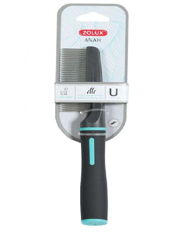 KAMM MIT MITTLERER DICHTE - Mit seinen 35 weit auseinander stehenden und robusten Zähnen entwirrt und glättet der Kamm das Fell und verhindert Knoten. Die an den Enden abgerundeten Zähne schützen die Haut Ihres Haustieres vor Irritationen.